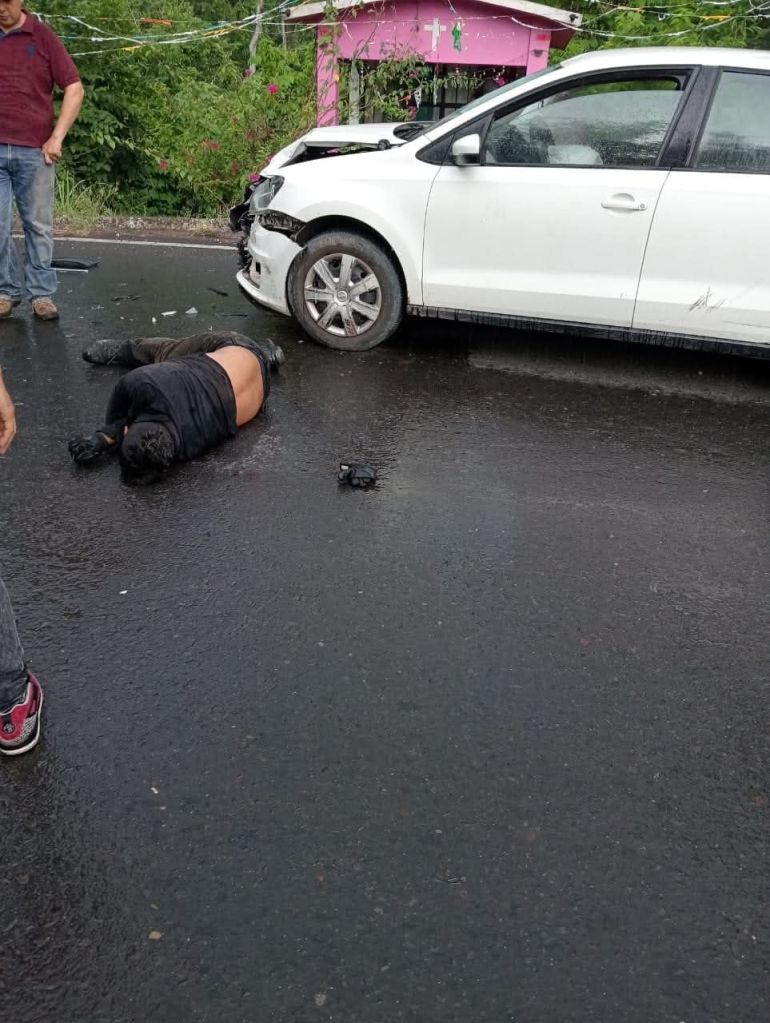 El joven circulaba en una motocicleta de la marca Italika y, a la altura de la capilla, perdió el control de la unidad tras salir de una curva y se impactó contra un vehículo Jetta de color blanco.