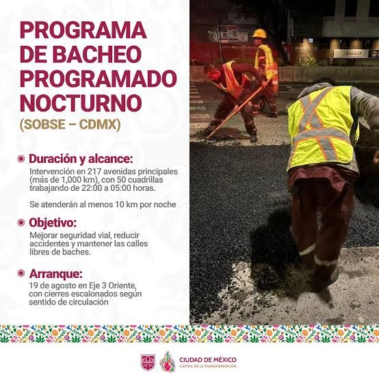 En ese sentido, explicó que la estrategia contempla tres acciones principales: el bacheo programado nocturno, la atención a reportes y emergencias ciudadanas en menos de 48 horas, a través de Locatel (*0311), y un programa de repavimentación de 250 kilómetros de vialidades principales que se llevará a cabo entre octubre de 2025 y mayo de 2026.