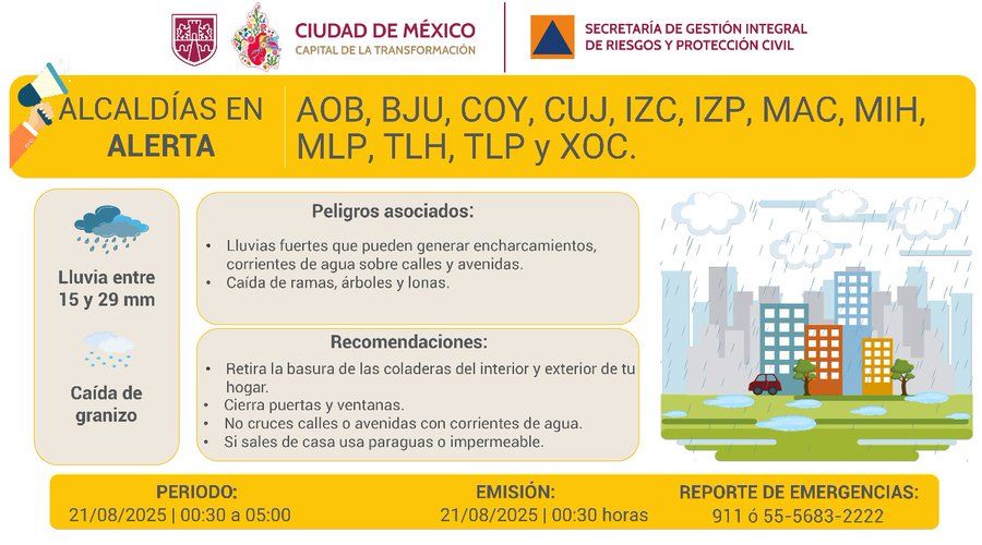 || La mañana de este 21 de agosto de 2025 se registraron varias afectaciones por las lluvias en la CDMX, entre las que se encuentra un socavón