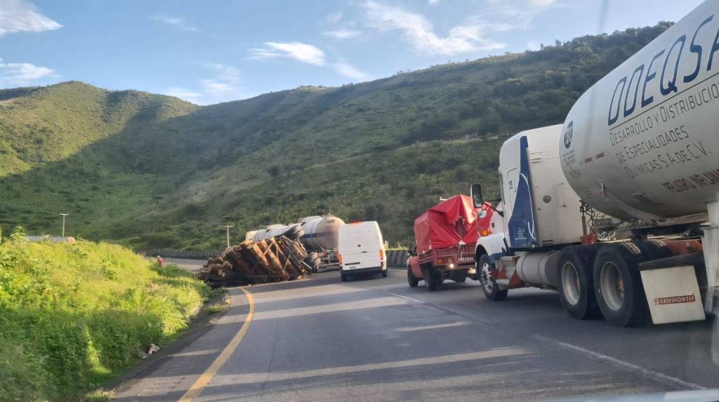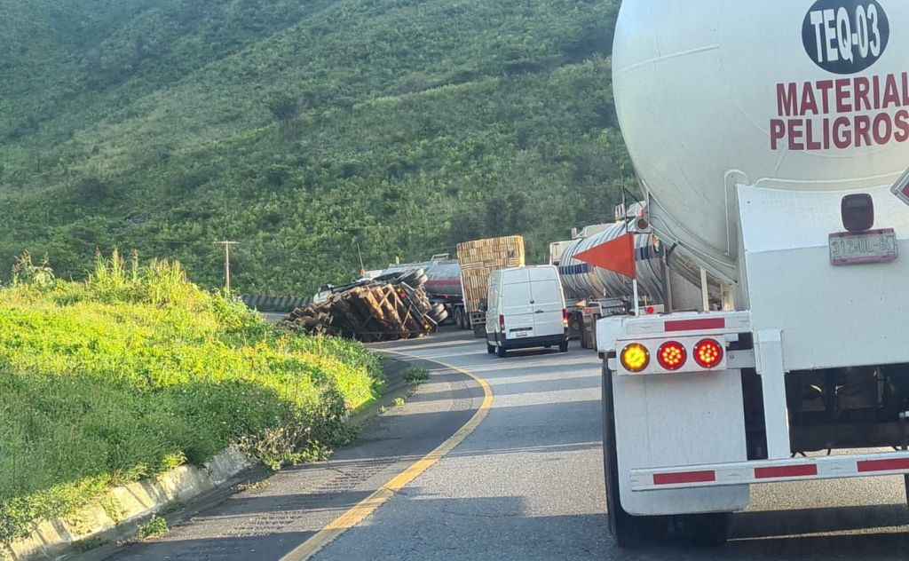Reportes oficiales dieron a conocer que, el conductor del tractocamión viajaba cargado con troncos de árbol y se presume que por el peso volcó sobre la cinta asfáltica de la autopista.