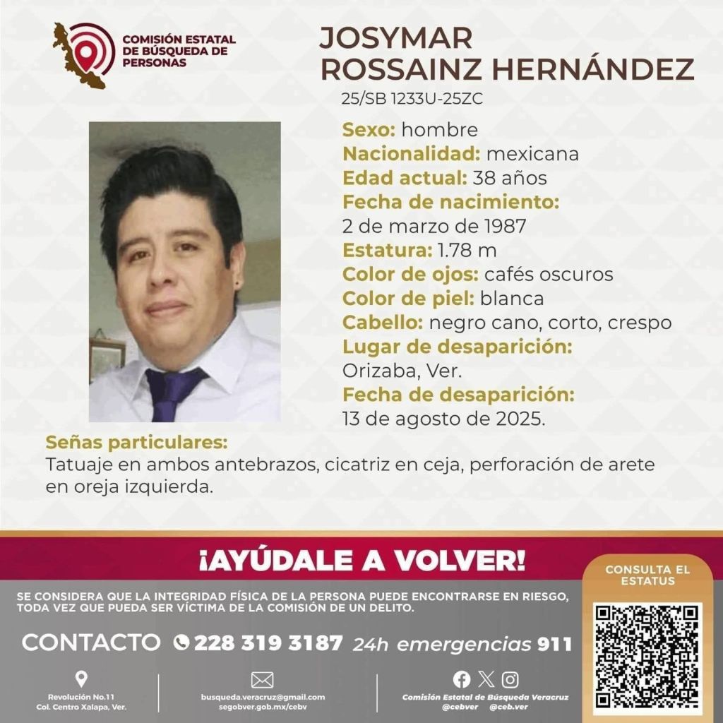 Mariano Escobedo, Ver – El médico del Instituto Mexicano del Seguro Social (IMSS), Josymar Rossainz Hernández, de 38 años, quien había sido reportado como desaparecido desde el pasado 13 de agosto, fue hallado sin vida este sábado dentro de un vehículo estacionado en la unidad habitacional Palmira.