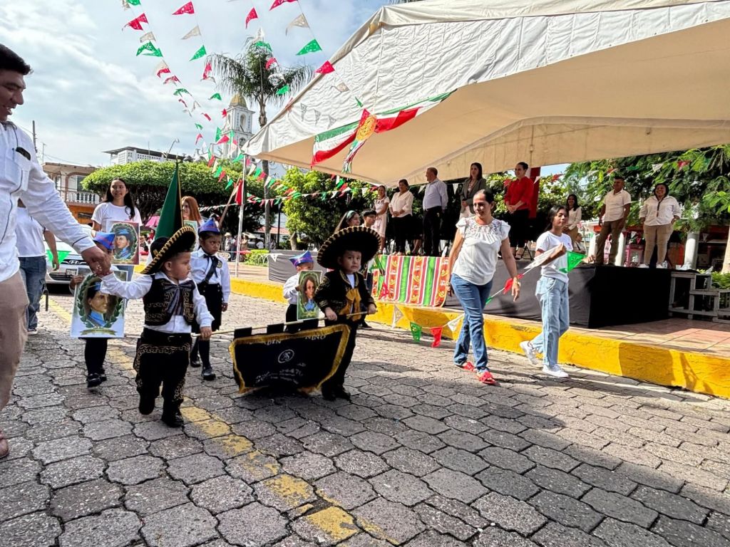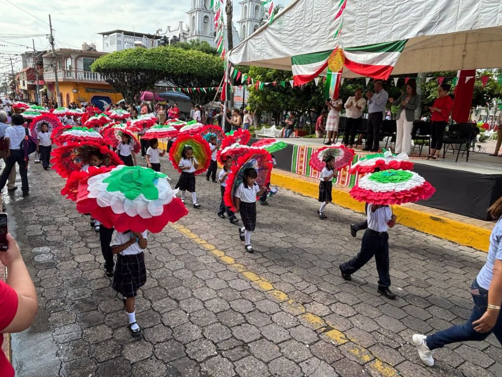 En el desfile los niños y niñas de preescolar son quienes encabezaron el recorrido, con todo su encanto y portando vistoso trajes alusivos a la fecha, en el que las bandas de guerra, las tablas rítmicas portando diversos elementos en colores verde, blanco y rojo dieron el color al desfile.