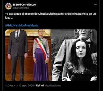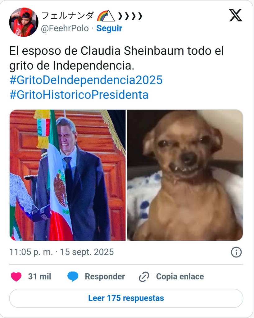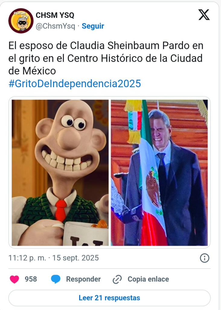 Los memes se multiplicaron con rapidez y colocaron al “Primer Caballero” entre las principales tendencias de la noche, justo después del nombre de la presidenta y del propio Grito de Independencia.