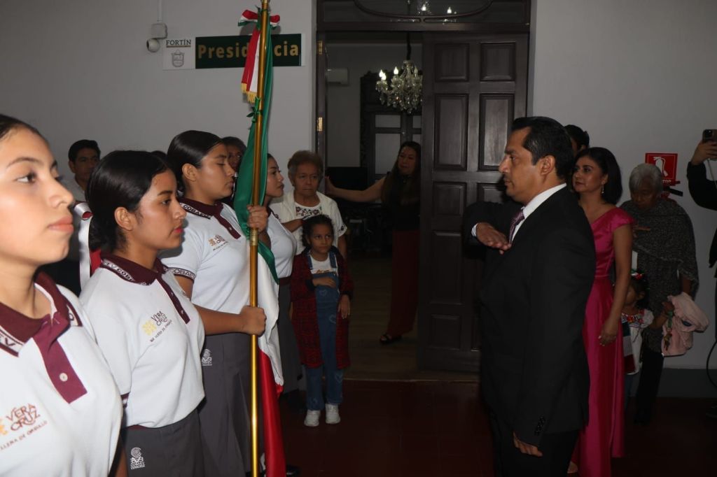 Fortín, Ver – En el marco del 215 aniversario del inicio de la Independencia de México, con gallardía y respeto, el presidente municipal Gerardo Rosales Victoria dio por cuarto año consecutivo el tradicional Grito de Dolores, frente a cientos de fortinenses que con mucho orgullo y empatía pronunciaron esta arenga patria. La ceremonia cívica se realizó en el palacio municipal en punto de las 22:30 horas, momento en el que la escolta del Coabev 56 Fortín entregó en sus manos el lábaro patrio para posteriormente salir al balcón y continuar con este protocolo cívico.