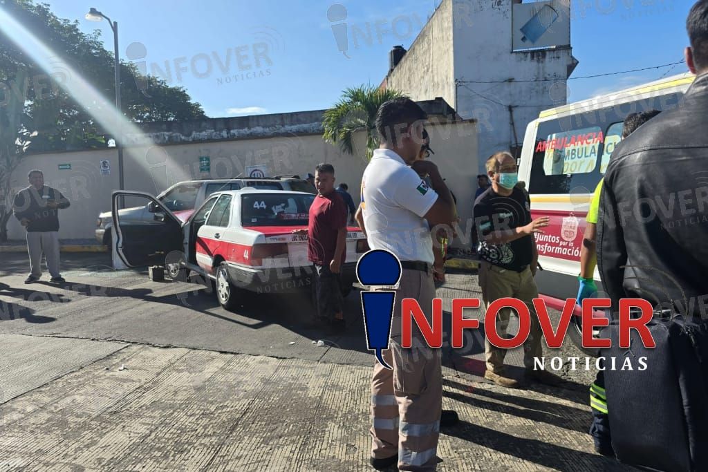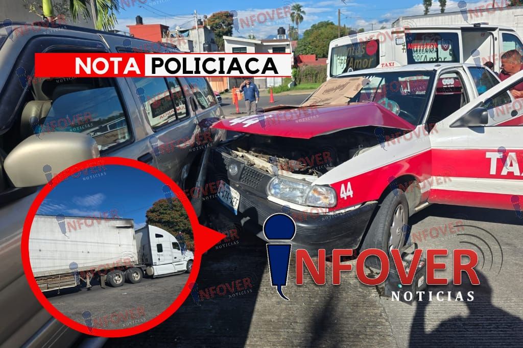 Un mecánico circulaba transportando equipo y material cuando, un taxi impactó contra la unidad, tras el primer choque, el vehículo de alquiler se proyectó contra una camioneta que se encontraba estacionada, provocando mayores daños.