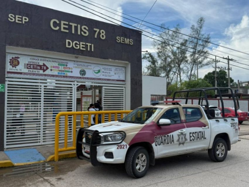 Agentes de la SSPE resguardaron al directivo para sacarlo de las instalaciones del Cetis, mientras los alumnos exigieron su renuncia.