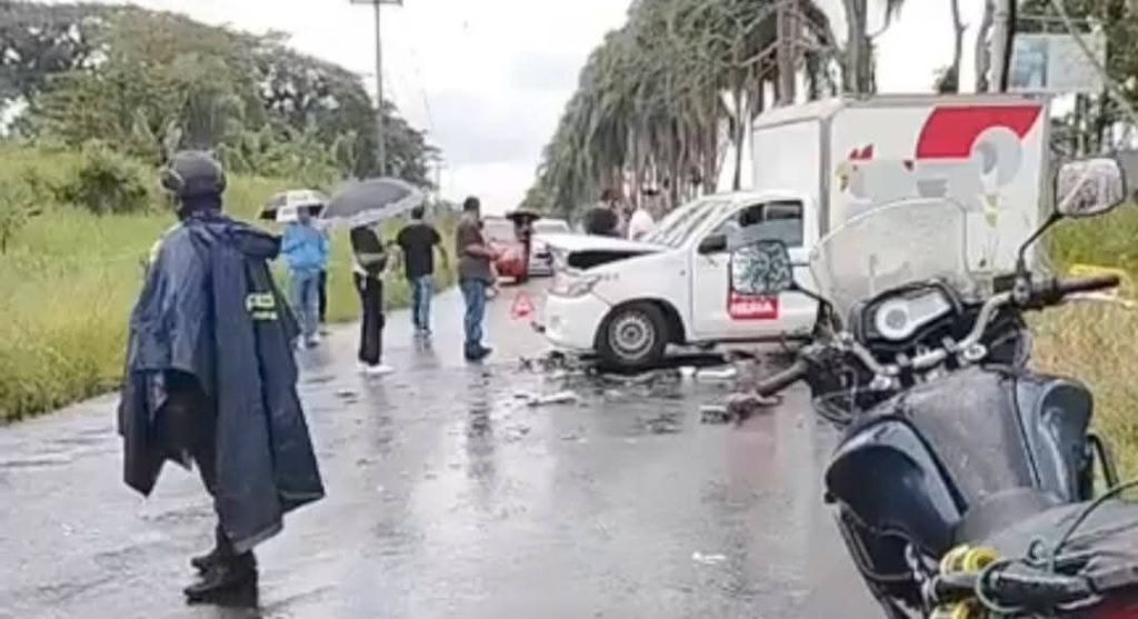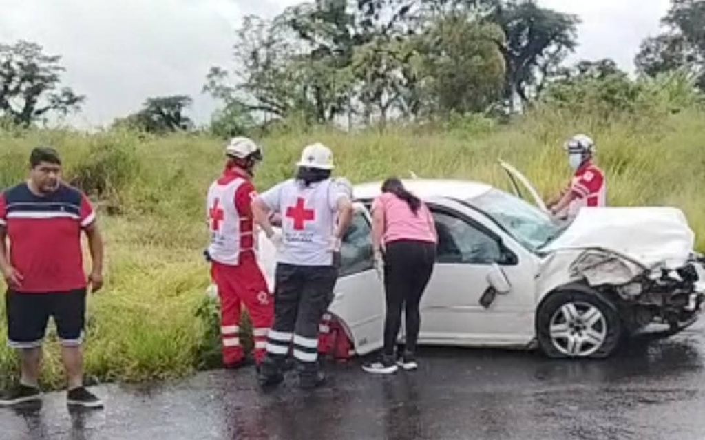 Córdoba, Ver – Fuerte impacto de frente se registró la tarde de domingo sobre camino estatal La luz Palotal hacia Chocamán, entre un VW Jetta blanco y una camioneta estaquitas para carga propiedad de Pollos Neria.