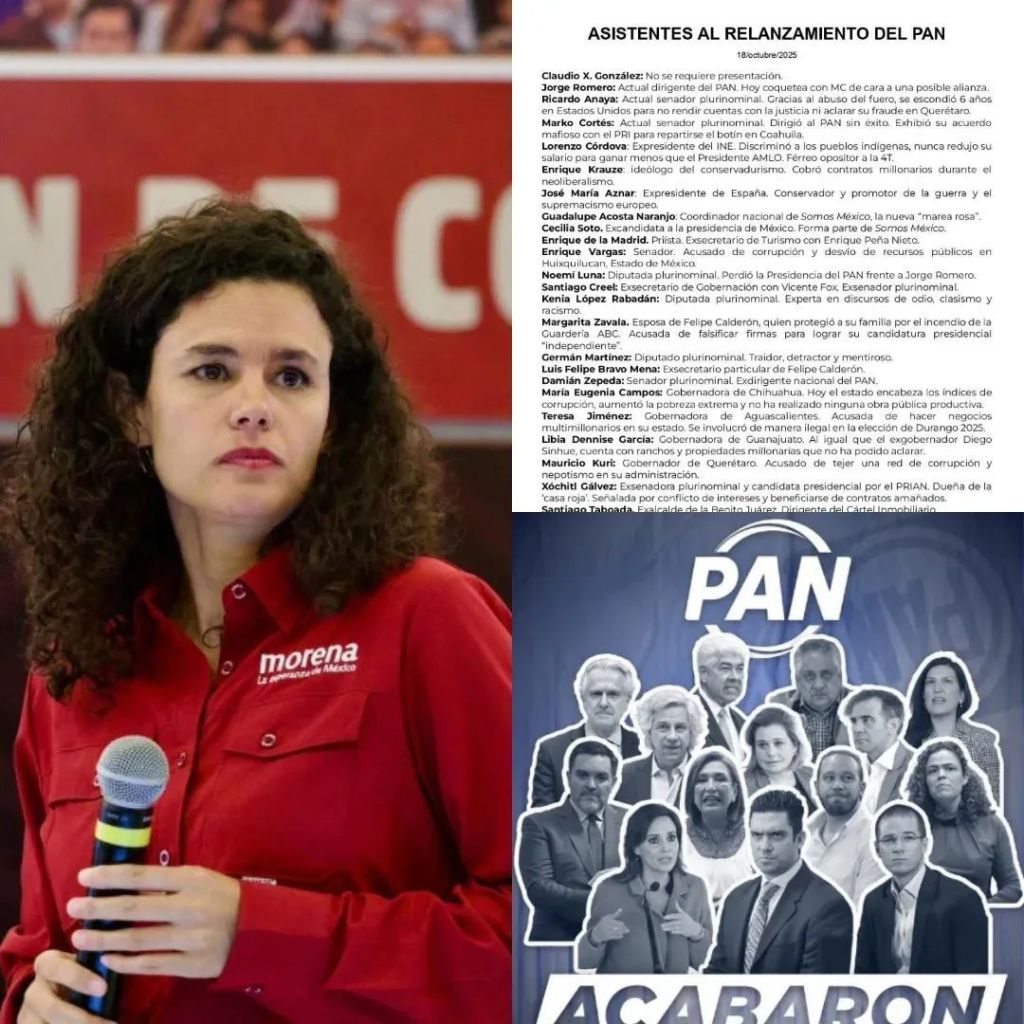 La presidenta nacional de Morena, Luisa María Alcalde, criticó este jueves el relanzamiento del Partido Acción Nacional (PAN), realizado un día antes en la Ciudad de México, y difundió una lista de los principales asistentes, a quienes calificó como “los mismos impresentables de siempre”.
