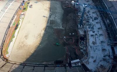 Cabe destacar que la plancha de concreto casi terminada, la cual funge como sustento de la cancha. Lamentablemente, los trabajos en las tribunas de la planta baja del estadio impiden que esté terminada.