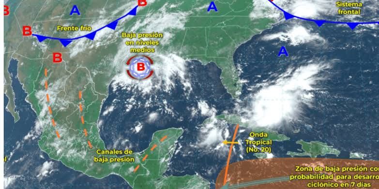 Por otro lado, el aire húmedo del océano Pacífico originará intervalos de chubascos en Nayarit, Jalisco, Colima, Michoacán y Guerrero; y lluvias aisladas en zonas del Estado de México, Sinaloa y Durango.