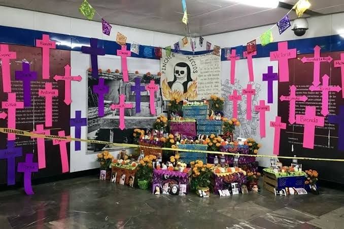 Diversos colectivos feministas y familiares de víctimas de feminicidio y desaparición colocaron este viernes una ofrenda del Día de Muertos en la Antimonumenta, ubicada frente al Palacio de Bellas Artes, en el centro de la Ciudad de México, para honrar la memoria de las mujeres y niñas que han sido asesinadas o que siguen desaparecidas en el país.