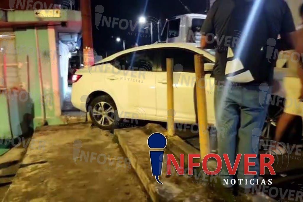 El impacto dejó el vehículo particular al borde de unas escaleras, situación que estuvo a punto de provocar una tragedia mayor.