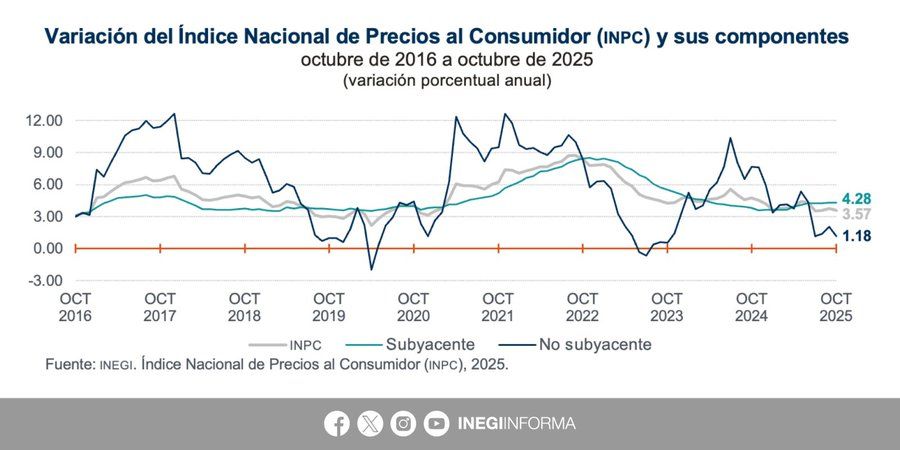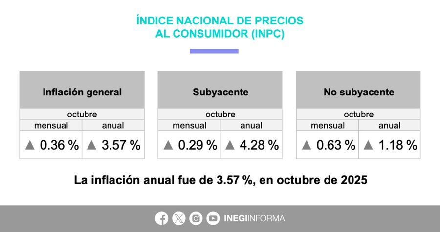 || El Inegi reveló que la inflación general anual en México se ubicó en un 3.57 por ciento durante el mes de octubre de 2025