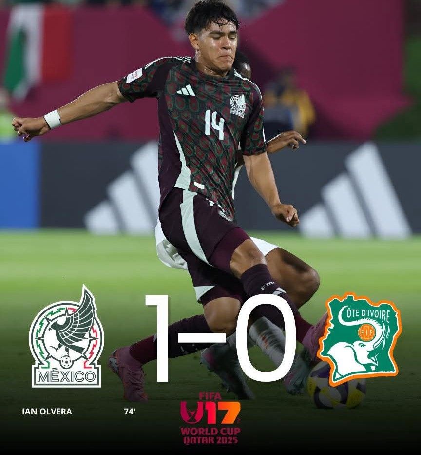 México consiguió su primera victoria del Mundial Sub-17 2025 luego de imponerse apenas 1-0 a Costa de Marfil gracias al gol en solitario del futbolista de Xolos de Tijuana, Ian Olvera, que otorgó puntos importantísimos para que el Tri se ilusione con el boleto a Dieciseisavos de Final.