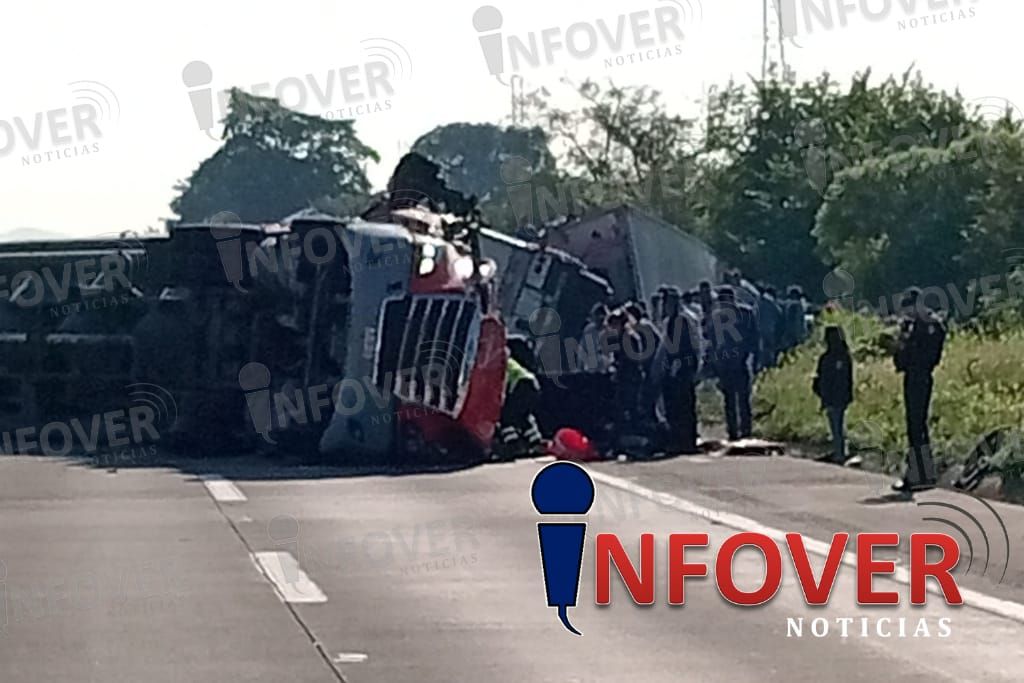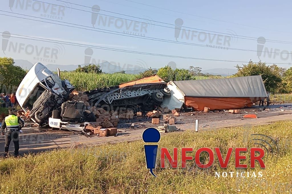 Cuitláhuac, Ver.— La mañana de este viernes se registró un lamentable accidente que se presentó sobre la autopista Córdoba–Veracruz dejando como saldo una persona muerta y otra lesionada, luego del choque entre dos tráileres a la altura del municipio de Cuitláhuac.