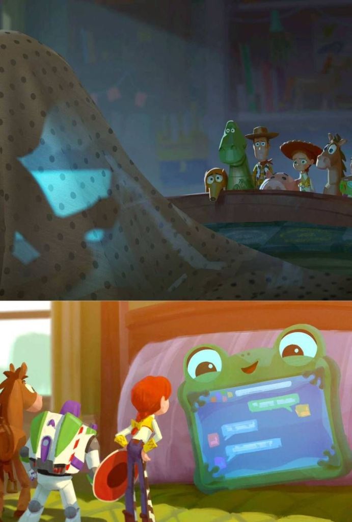 La gran novedad de esta quinta entrega es que los juguetes: Woody, Buzz Lightyear y Jessie, ya no solo lucharán contra otros juguetes, sino contra una tablet inteligente con forma de rana llamada Lilypad.