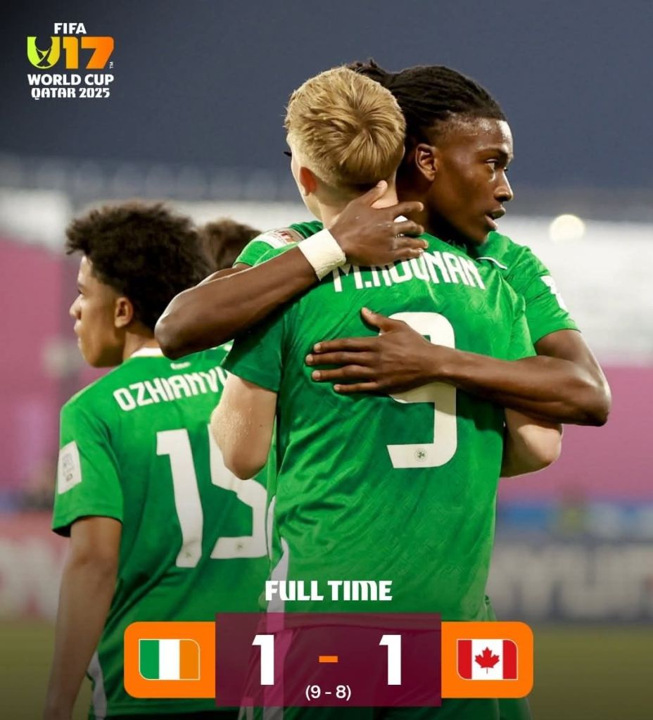 Irlanda y Canadá empataron a 1 en la prórroga y se fueron a los penales, para que Irlanda se llevará el triunfo.