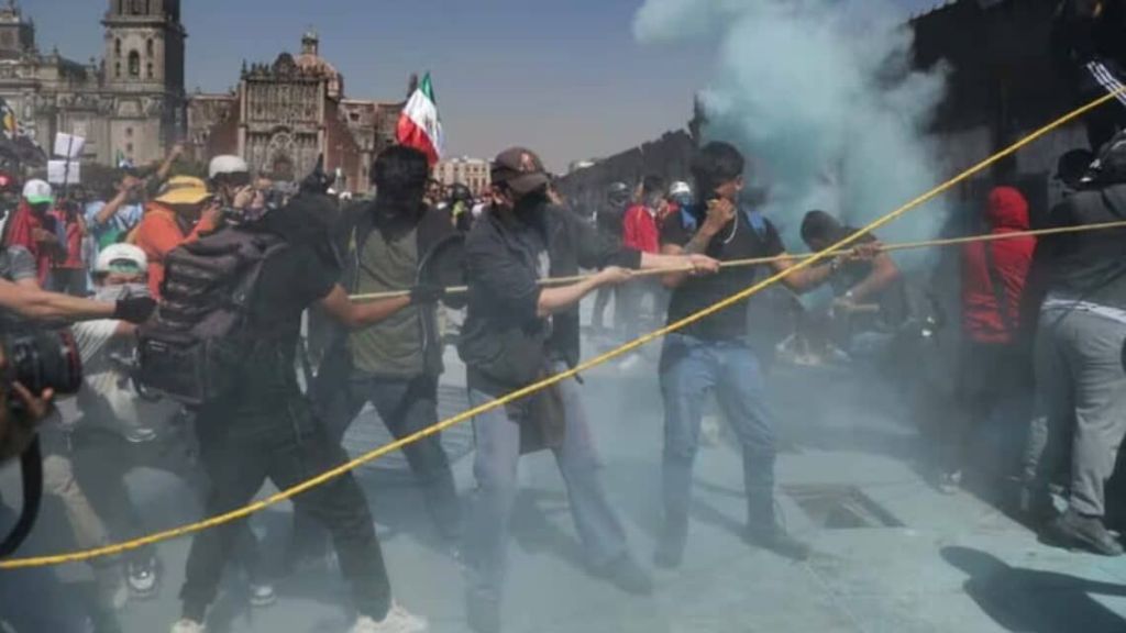 Todo ocurrió en medio de consignas e incluso con personas que pusieron la canción Gimme the Power de Molotov desde bocinas. Dentro del ambiente ya caldeado, una persona fue acusada de robar un celular y fue golpeada por varios manifestantes.