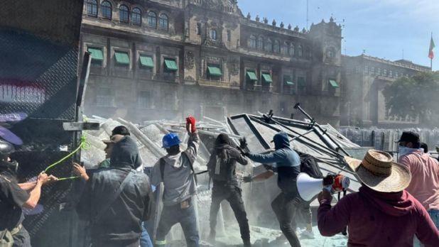 A las 2:25, los inconformes retiraron otro fragmento de la valla, por lo que ya solo una parte de Palacio Nacional permanecía resguardada.