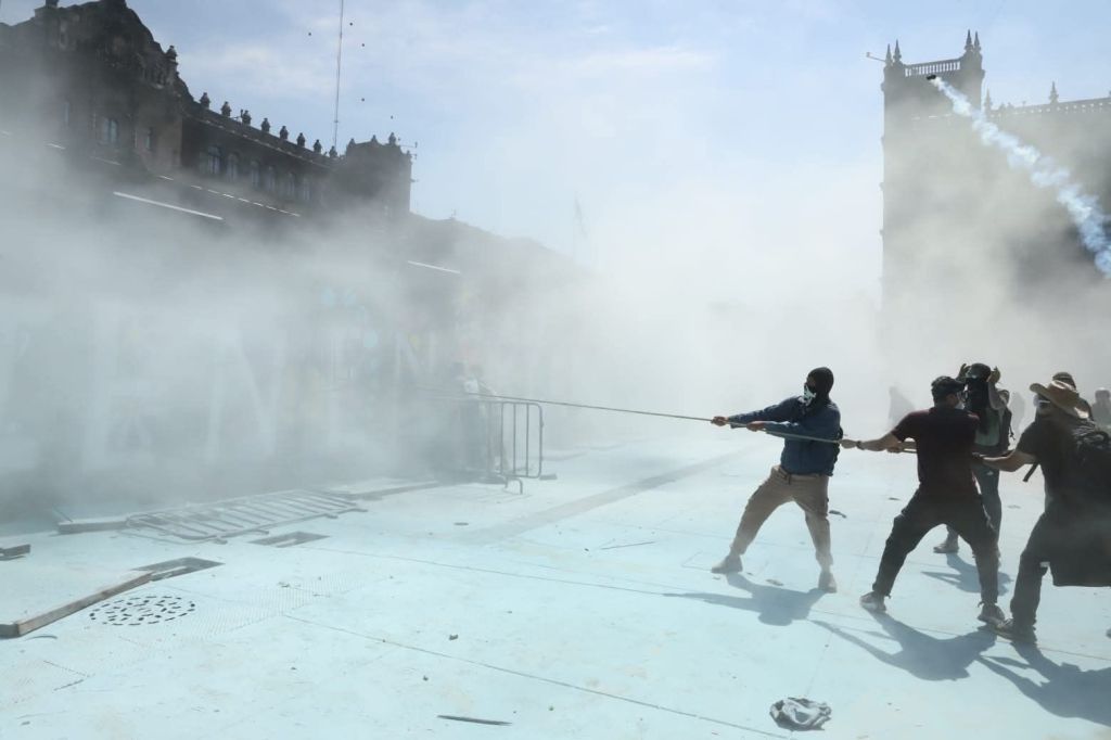 || Autoridades de la CDMX lanzan gas para dispersar a los manifestantes que se encontraban tirando las vallas que protegen al Palacio Nacional en el Zócalo