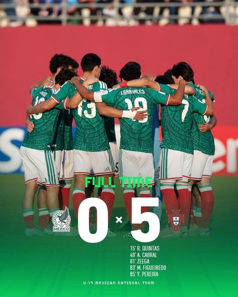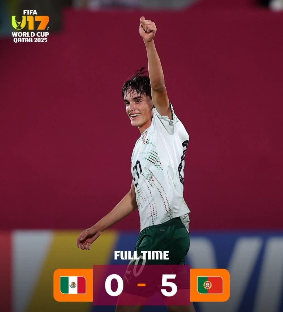 México quedó oficialmente fuera del Mundial Sub 17 de Qatar 2025 al caer ante Portugal por marcador de 5-0 en los octavos de final.
