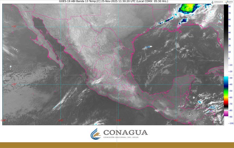 Por otra parte, canales de baja presión sobre el occidente, oriente y sureste de la República Mexicana, en combinación con el ingreso de aire húmedo proveniente del océano Pacífico, golfo de México y mar Caribe, generarán chubascos dispersos con posibles descargas eléctricas en Oaxaca, Chiapas, Veracruz (regiones Papaloapan, Los Tuxtlas y Olmeca), Tabasco y Quintana Roo.