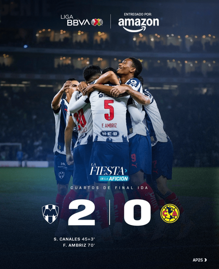 Con polémica incluida, el Monterrey aprovechó su localía en el Estadio BBVA y apenas pudo llevarse un gol de ventaja a su próxima visita a la Ciudad de México luego de que venció al América por marcador de 2-0, con gol de Sergio Canales y un autogol de Igor Lichnovsky en el marco de la Ida de los Cuartos de Final del Apertura 2025.