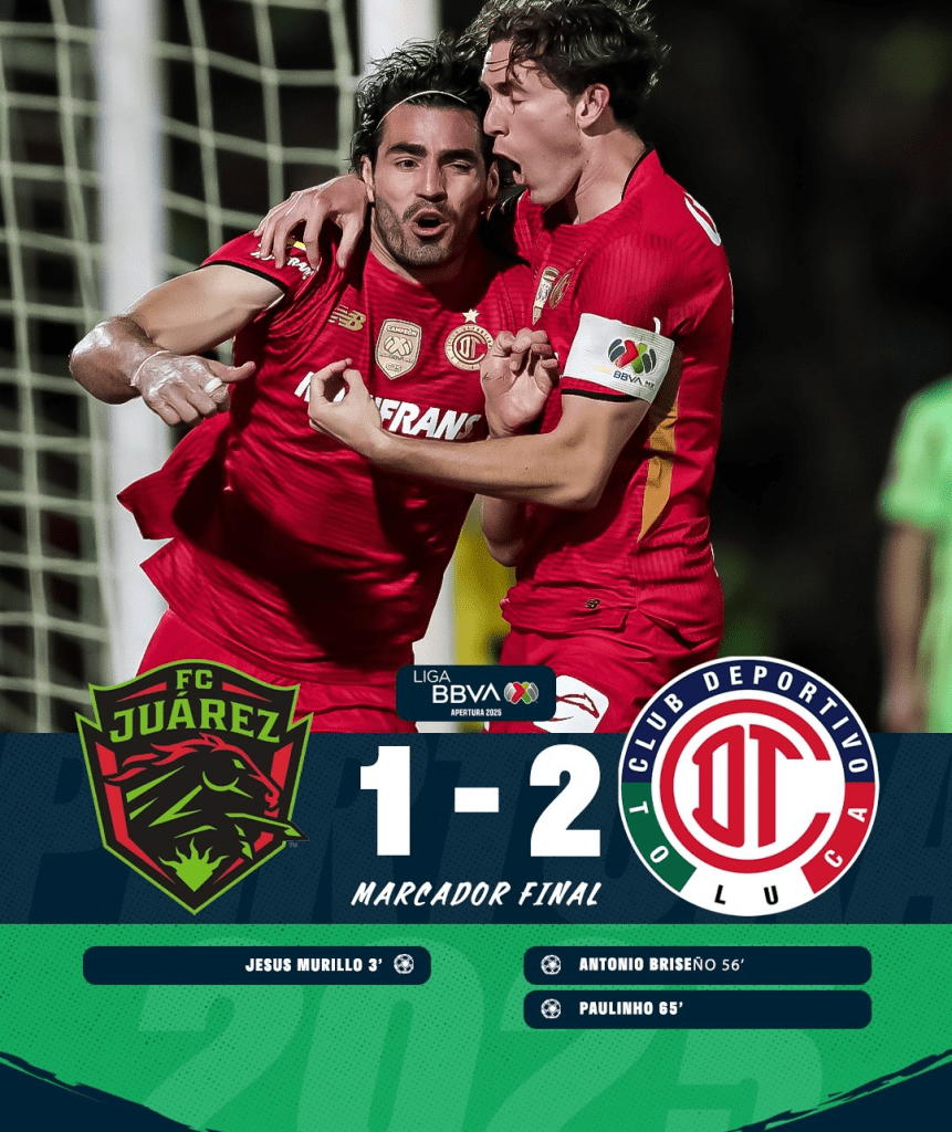 Los Bravos de Juárez midieron fuerzas con los actuales campeones, los Diablos Rojos de Toluca en el juego de ida de los cuartos de final del torneo Apertura 2025 de la Liga MX, el resultado en el Estadio Olímpico Benito Juárez arrojó un 1-2 en favor de los Escarlatas.