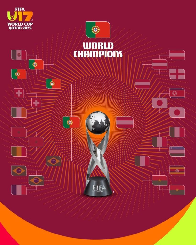 Portugal se coronó por primera vez campeón mundial de fútbol sub-17 al imponerse, por 1 a 0, a Austria en la final de la Copa del Mundo realizada en Catar.