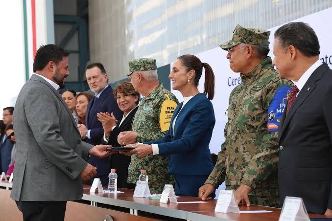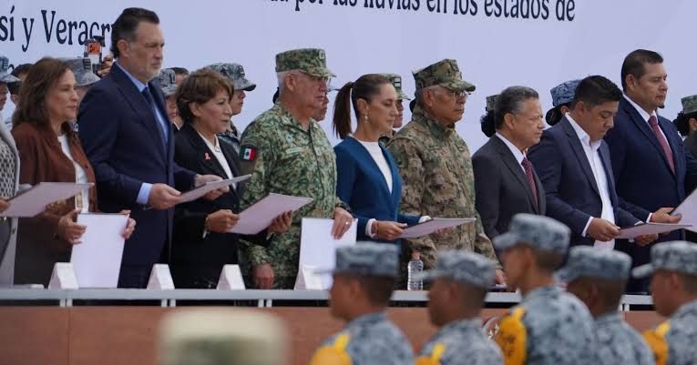“En esta ocasión, una vez más ustedes, mujeres y hombres, fueron la primera mano extendida hacia quienes lo habían perdido todo. Estuvieron ahí, con disciplina, con valor, con humanidad. Y el pueblo de México, como siempre, respondió del mismo modo: con solidaridad, fraternidad y una generosidad que estremece, que nace de lo más profundo de nuestra identidad”, dijo en el acto, en el que estuvo acompañada por los secretarios de la Defensa, Ricardo Trevilla, y de la Marina, Raymundo Morales; así como por los gobernadores de las cinco entidades afectadas; la del estado de México, Delfina Gómez; y por integrantes de su gobierno.