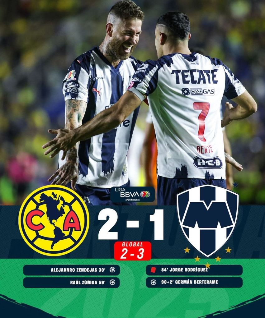 || Un gol de Germán Berterame en el tiempo de compensación le dio la clasificación a las semifinales, en dónde Monterrey dejo fuera a las Águilas en su casa, con su gente