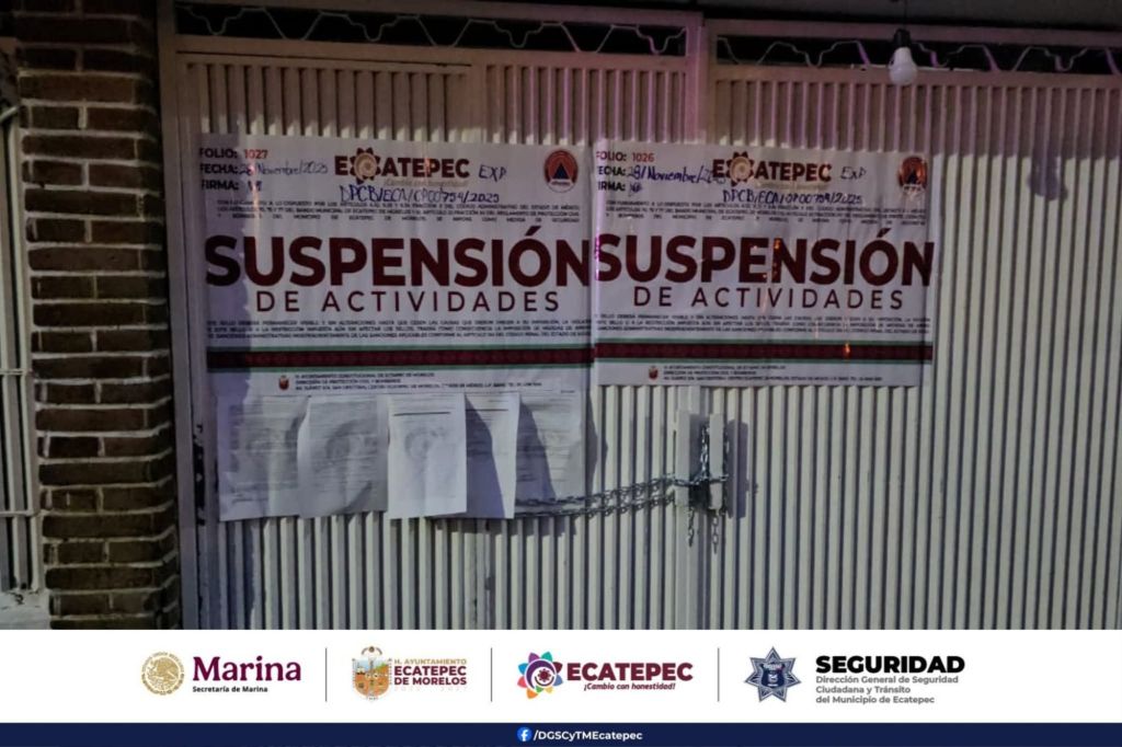 Autoridades del ISEM y Protección Civil Municipal colocaron sellos de suspensión, ya que el inmueble operaba sin permisos y en condiciones insalubres.
