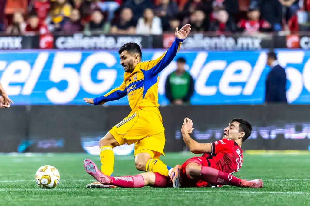 El equipo felino empezó el encuentro con una intensidad desbordada. Apenas al minuto cinco generaron la primera de peligro cuando Juan Brunetta conectó un cabezazo dentro del área que se fue por arriba del arco, luego de un recentro de André-Pierre Gignac. Tres minutos más tarde, Xolos respondió con un intento de Jesús Gómez desde larga distancia que buscó sorprender a Nahuel Guzmán, aunque el balón terminó por irse por encima del travesaño.