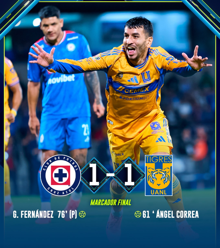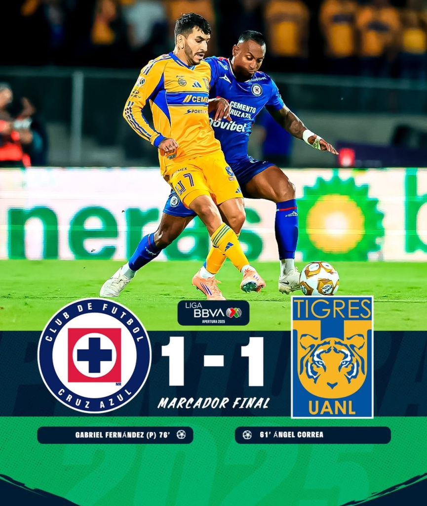 Todo se definirá en el juego de vuelta. Cruz Azul logró rescatar un empate en casa tras igualar 1-1 frente a unos Tigres que perdonaron en repetidas ocasiones y dejaron escapar la oportunidad de viajar a Monterrey con una ventaja cómoda rumbo a la gran final del Torneo Apertura 2025.