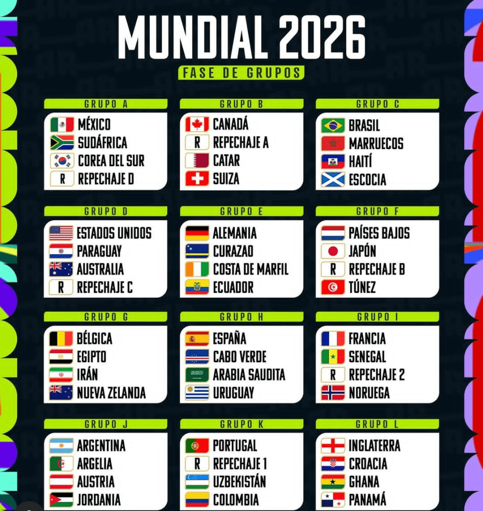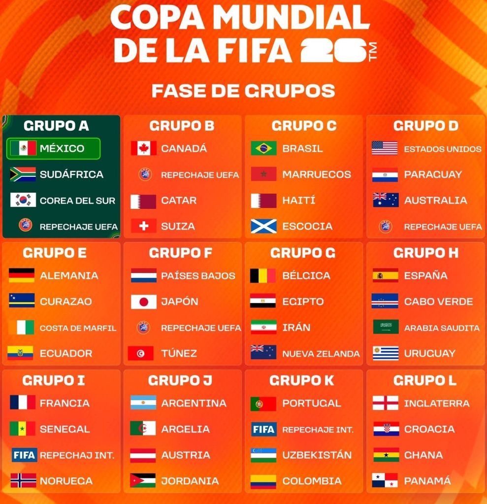 El Sorteo del Mundial 2026 definió el futuro para las 42 selecciones que han confirmado su asistencia y para los seis boletos aún disponibles para el repechaje por lo que ya conocemos cómo quedaron conformados los doce grupos.