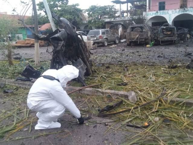 Personal especializado de la Fiscalía de Michoacán, en coordinación con la Defensa Nacional (Sedena), la Secretaría de Marina (Semar), la Guardia Nacional y la Secretaría de Seguridad y Protección Ciudadana (SSPC), realiza labores de investigación para determinar las causas del estallido.