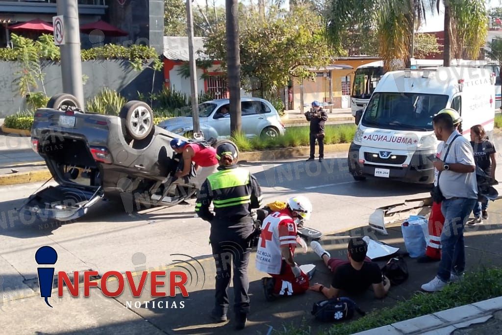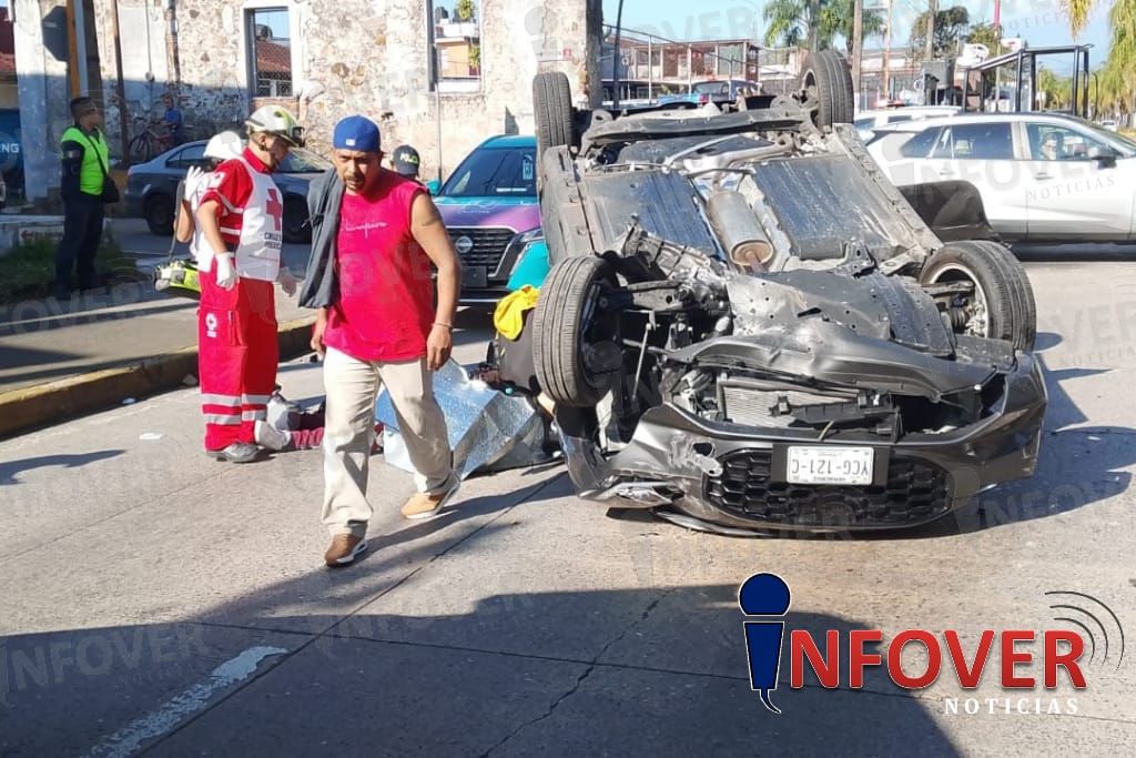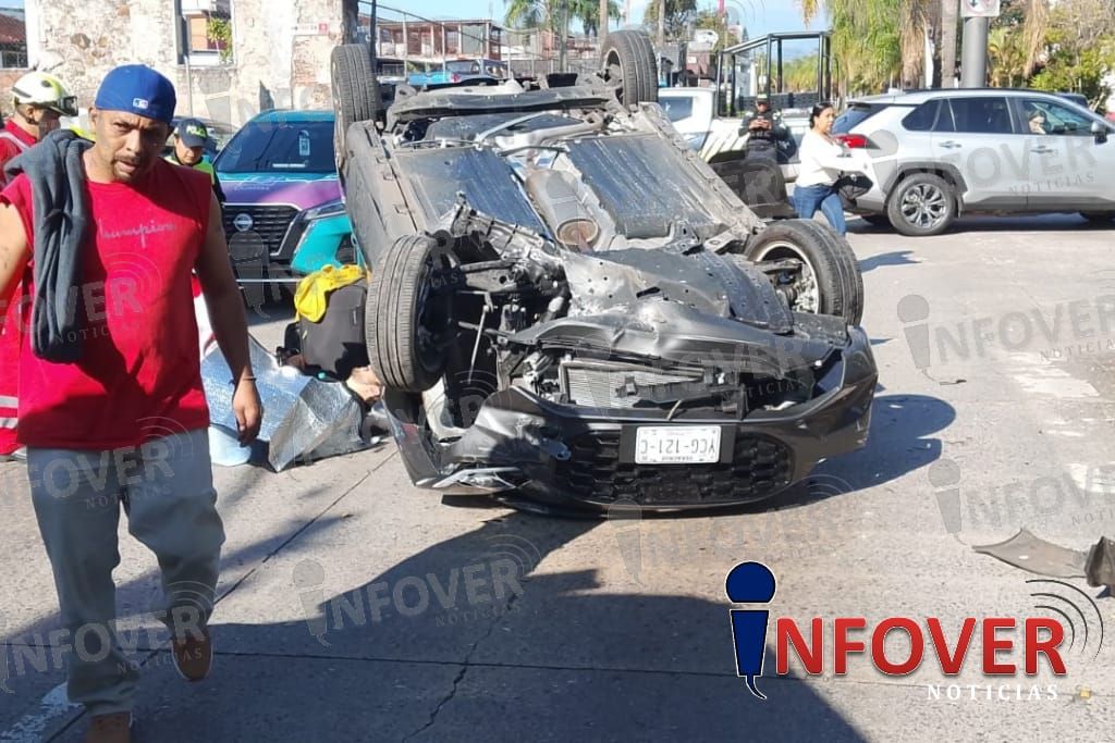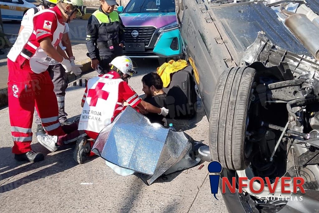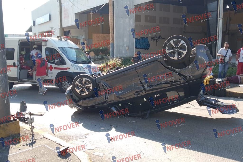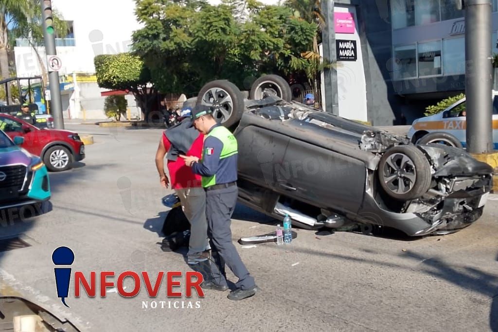 De acuerdo a testigos del hecho, el percance ocurrió cuando ambas unidades circulaban por dicho Boulevard, y tras el choque, el vehículo particular perdió el control y volcó, quedando con las llantas hacia arriba.