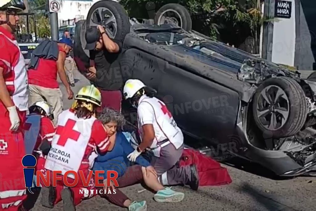 Córdoba, Ver — La mañana de este sábado 27 de Diciembre se registró un accidente sobre el Boulevard Fundadores en el cruce de la avenida 1 y calle 24, de esta ciudad de Córdoba, donde un taxi presuntamente impactó a un automóvil particular el cual termino volcado, dejando como saldo dos personas lesionadas.