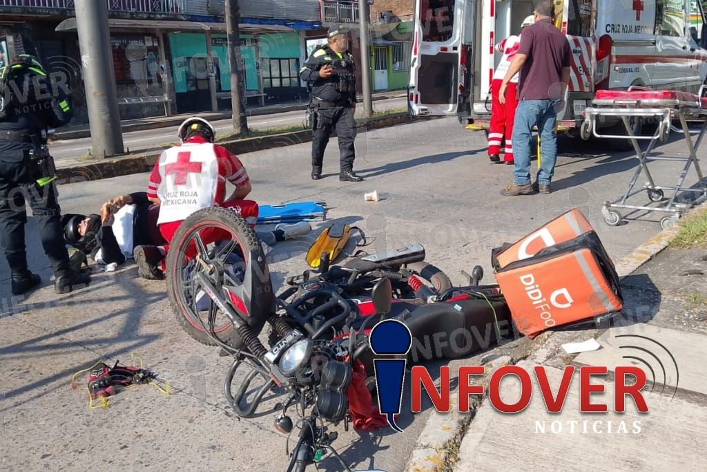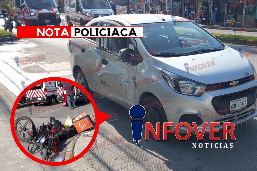 Los hechos ocurrieron cuando el repartidor de la aplicación DiDi circulaba sobre la calle 22 a bordo de una motocicleta de marca Vento en color negro y al llegar a la avenida 11, se impactó contra un vehículo tipo Chevrolet Aveo en color gris.