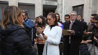 Posteriormente, Sheinbaum Pardo, acompañada de integrantes de su gabinete y reporteros, salió del Salón de Tesorería de Palacio Nacional para ponerse a resguardo, como lo indican los protocolos de Protección Civil.
