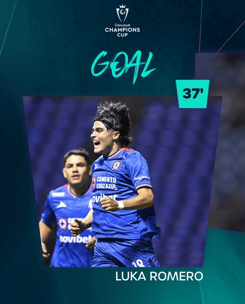Desde los primeros minutos fue un dominio total de los celestes, pero sería hasta el 37, en un pase filtrado al área, que Luka Romero persiguió el balón con potencia, libró un intento de falta y alcanzó a tocar la de gajos para mandarla al fondo y poner el 1-0 para el Cruz Azul.