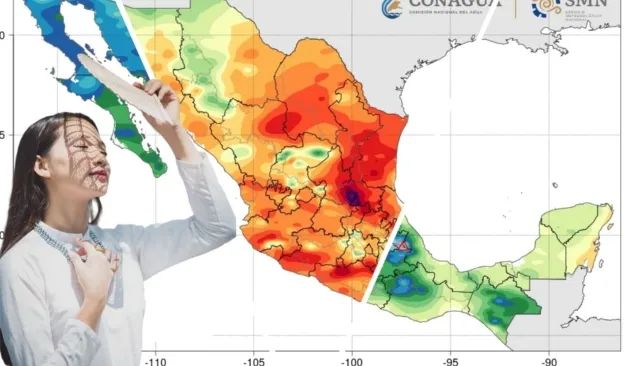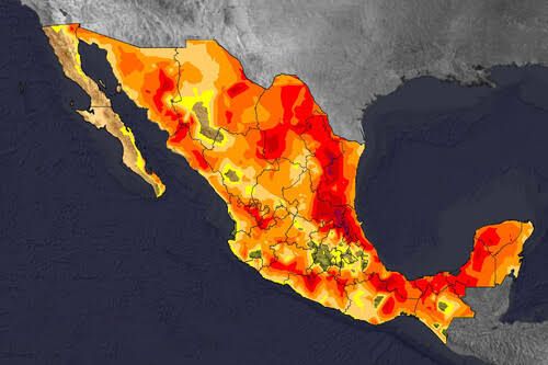Finalmente, una circulación anticiclónica en niveles medios de la atmósfera mantendrá ambiente muy caluroso en la mayor parte del territorio mexicano, prevaleciendo la onda de calor en Durango (oeste), Jalisco (centro-sur), Michoacán (centro y suroeste), Morelos, Puebla (suroeste), Guerrero (centro y este), Oaxaca (sur y este) y Chiapas (oeste).